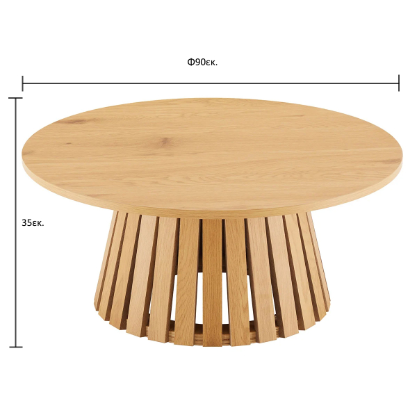 Τραπέζι μέσης στρογγυλό με φυσική όψη ξύλου που προσδίδει κομψότητα και ζεστασιά στον χώρο. Έχει μοντέρνο σχεδιασμό και είναι ιδανικό να διακοσμήσει ττο σαλόνι σας, καθώς ταιριάζει με όλα τα είδη διακόσμησης. Το προϊόν έρχεται αμοντάριστο και συναρμολογείται βάσει οδηγιών.