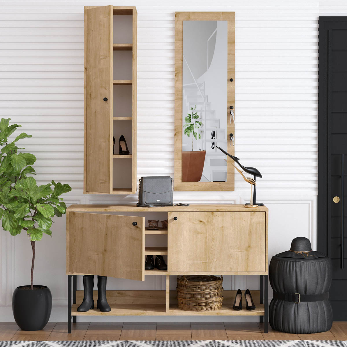 | SpitishopΈπιπλο Εισόδου Με Ντουλάπι & Καθρέφτη (Σετ) A-G Chumo 393MRD1125 Oak