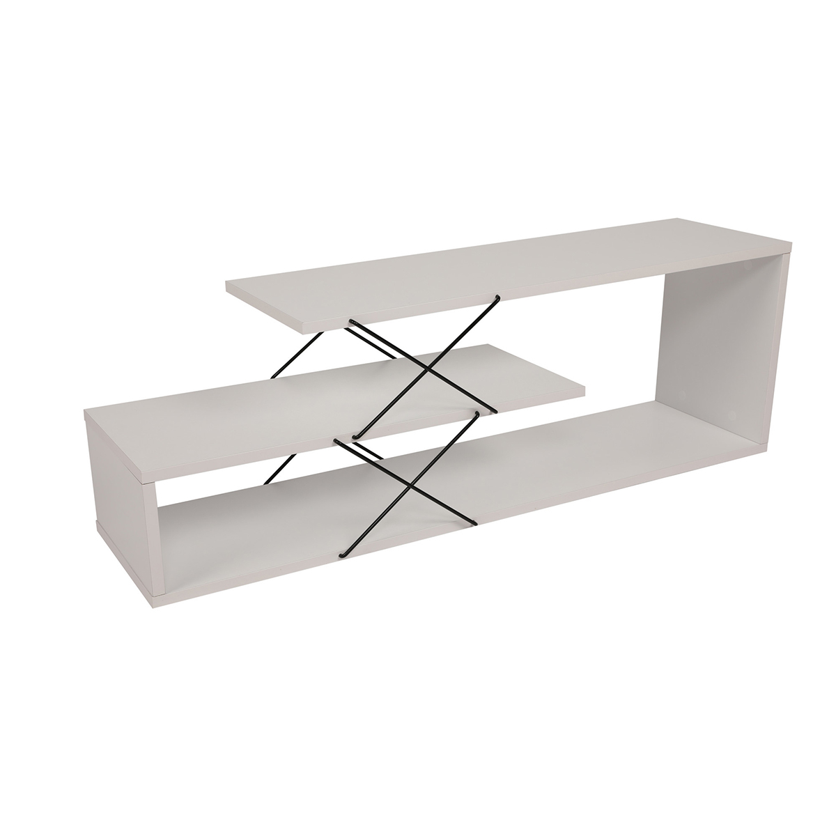 Κονσόλα τηλεόρασης σε λευκό χρώμα με μοντέρνο σχεδιασμό. Χάρη στο πρωτότυπο σχήμα του, δημιουργεί άφθονο χώρο για να τοποθετήσετε κονσόλες, μικροπράγματα, βιβλία ή ότι άλλο επιθυμείτε. Κατασκευασμένο από υψηλής ποιότητας, ανθεκτικά υλικά για να στολίζει το σαλόνι σας για μεγάλο χρονικό διάστημα. Το προϊόν έρχεται αμοντάριστο και συναρμολογείται βάσει οδηγιών.