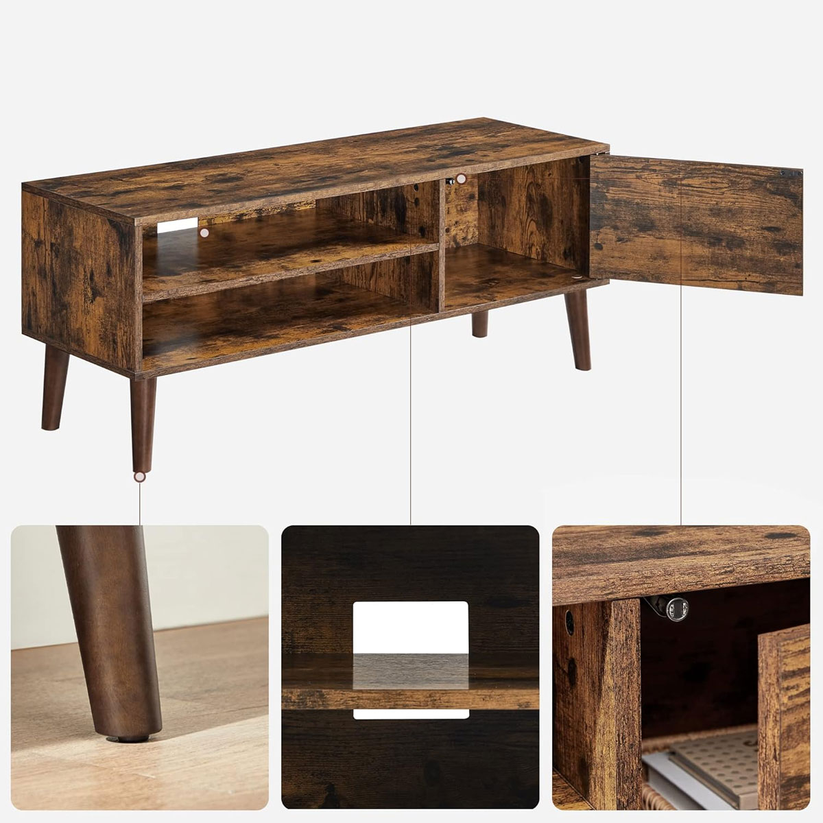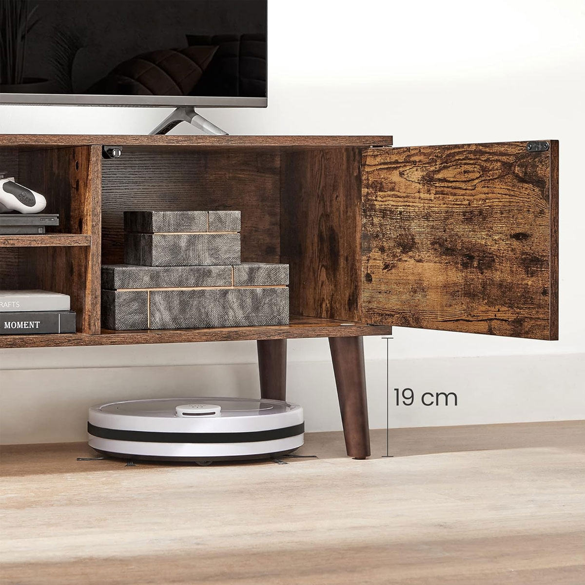 Κονσόλα τηλεόρασης με μοντέρνο ύφος από την εταιρεία Vasagle. Διαθέτει ράφια και ντουλάπι για να αποθηκεύσετε τα πράγματα σας. Ιδανικό έπιπλο για να τοποθετήσετε την τηλεόραση και να οργανώσετε τα αντικείμενα σας. Το προϊόν έρχεται αμοντάριστο και συναρμολογείται βάσει οδηγιών.
