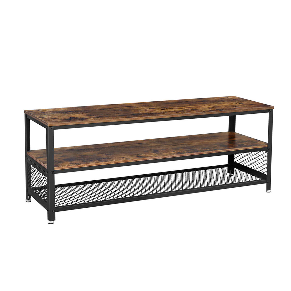 Κονσόλα τηλεόρασης από την εταιρεία Vasagle. Διαθέτει ράφια για να οργανώνετε τα πράγματα σας. Ο σχεδιασμός της ταιριάζει με κάθε στυλ διακόσμησης. Το προϊόν έρχεται αμοντάριστο και συναρμολογείται βάσει οδηγιών.