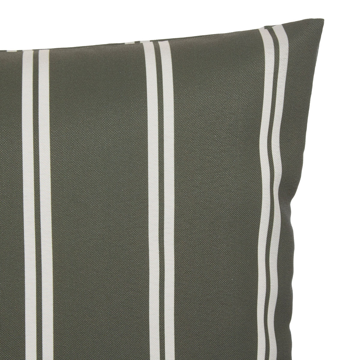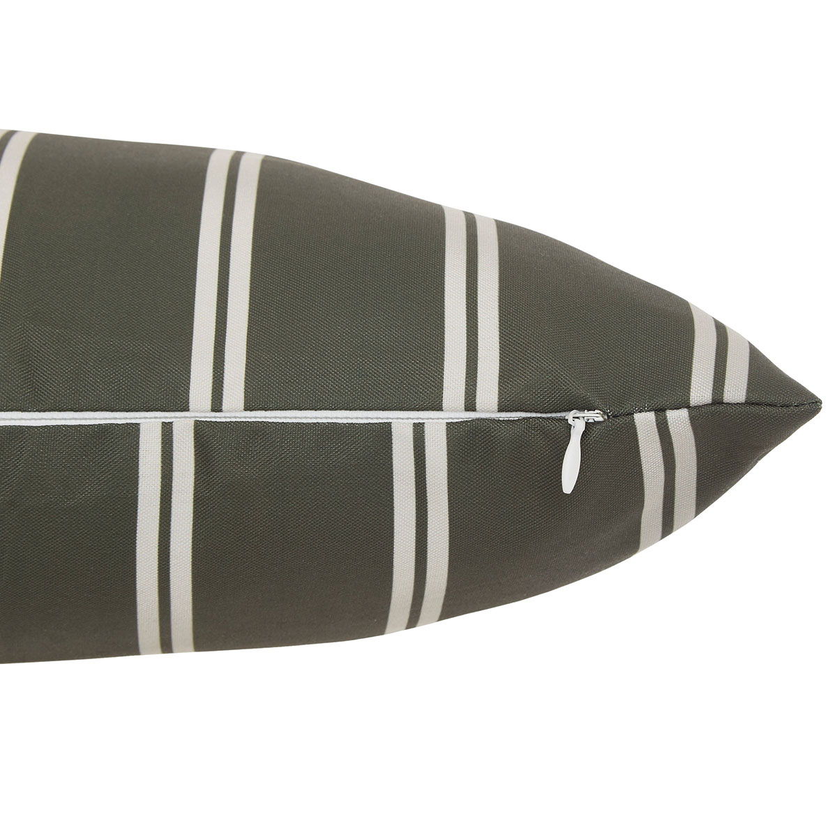 Αδιάβροχη διακοσμητική μαξιλαροθήκη με κομψό ριγέ σχέδιο προσθέτει διαχρονικό στυλ και ισορροπία στη διακόσμηση. Κατασκευασμένη από ανθεκτικό polyester, είναι κατάλληλη για εσωτερικούς και εξωτερικούς χώρους, προσφέροντας προστασία από υγρασία και εύκολη συντήρηση. Η χακί απόχρωση και οι κάθετες λευκές ρίγες την καθιστούν ιδανική επιλογή για καναπέ, πολυθρόνα ή βεράντα, ολοκληρώνοντας τον χώρο με διακριτική κομψότητα. Συνδυάστε το με τα υπόλοιπα προϊόντα του ίδιου σετ για ολοκληρωμένη διακόσμηση του εξωτερικού σας χώρου.