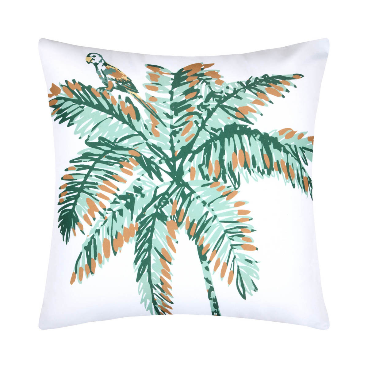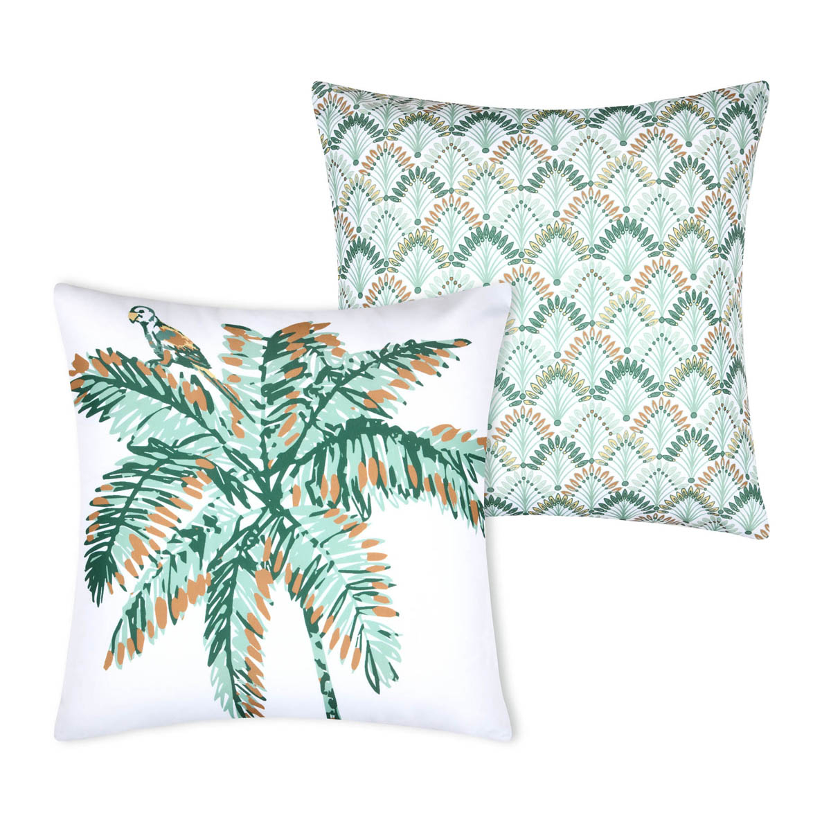 Αδιάβροχο διακοσμητικό μαξιλάρι διπλής όψης με τη μια πλευρά να έχει tropical σχέδιο σε πράσινο-βεραμάν χρώμα με μπεζ λεπτομέρειες και λευκό φόντο. Η άλλη πλευρά είναι φλοράλ σε βεραμάν αποχρώσεις με πράσινες-μπεζ λεπτομέρειες. Το ύφασμα της μαξιλαροθήκης είναι 100% polyester, ενώ η γέμιση είναι από πολυεστερική βάτα. Μπορείτε να το τοποθετήσετε στο σαλόνι ή στον κήπο σας καθώς το ύφασμα είναι υδροαπωθητικό. Συνδυάστε το με τα υπόλοιπα είδη της σειράς για ένα ολοκληρωμένο αποτέλεσμα.