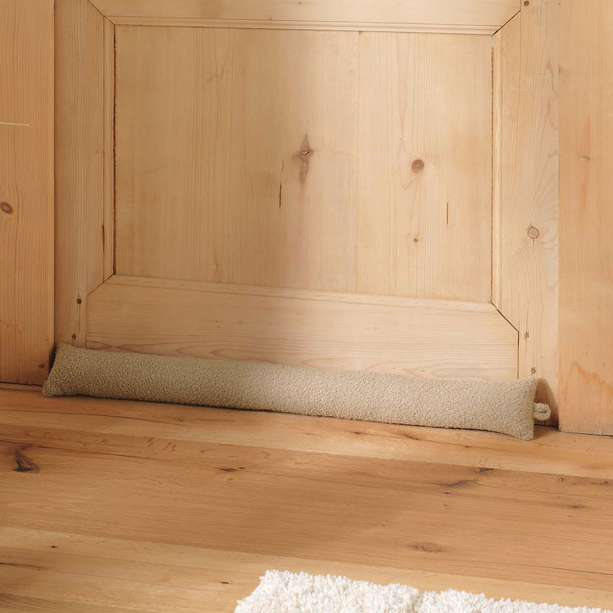 Γούνινο αεροστόπ για να μην περνάει ο αέρας από την χαραμάδα της πόρτας. Είναι κατασκευασμένο από μπουκλέ fleece ύφασμα με σύνθεση 100% polyester σε μπεζ χρώμα. Ιδανικό για να διατηρείτε την θερμοκρασία στον χώρο σας σταθερή.