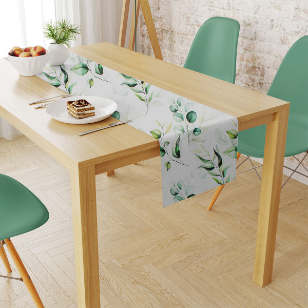 | DimcolΑλέκιαστο Τραπεζομάντηλο (140x140) + Τραβέρσα (40x140) Dimcol Green Leaves 462 White-Green