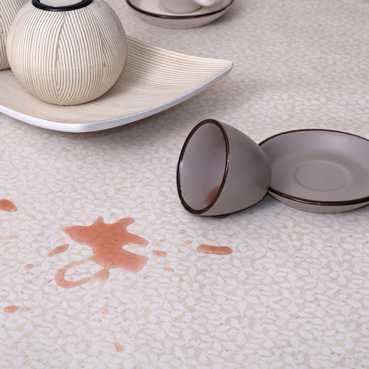 Αλέκιαστο τραπεζομάντηλο 140x140 της εταιρείας Viopros σε εκρού-μπεζ αποχρώσεις με διακριτικό φλοράλ σχέδιο. Είναι κατασκευασμένο από ύφασμα 50% βαμβάκι - 30% polyester - 20% λινό με διπλή ακρυλική επίστρωση που το καθιστά πολύ πρακτικό και εύχρηστο. Συνδυάστε το με τα υπόλοιπα προϊόντα της ίδιας σειράς για ένα ολοκληρωμένο αποτέλεσμα.