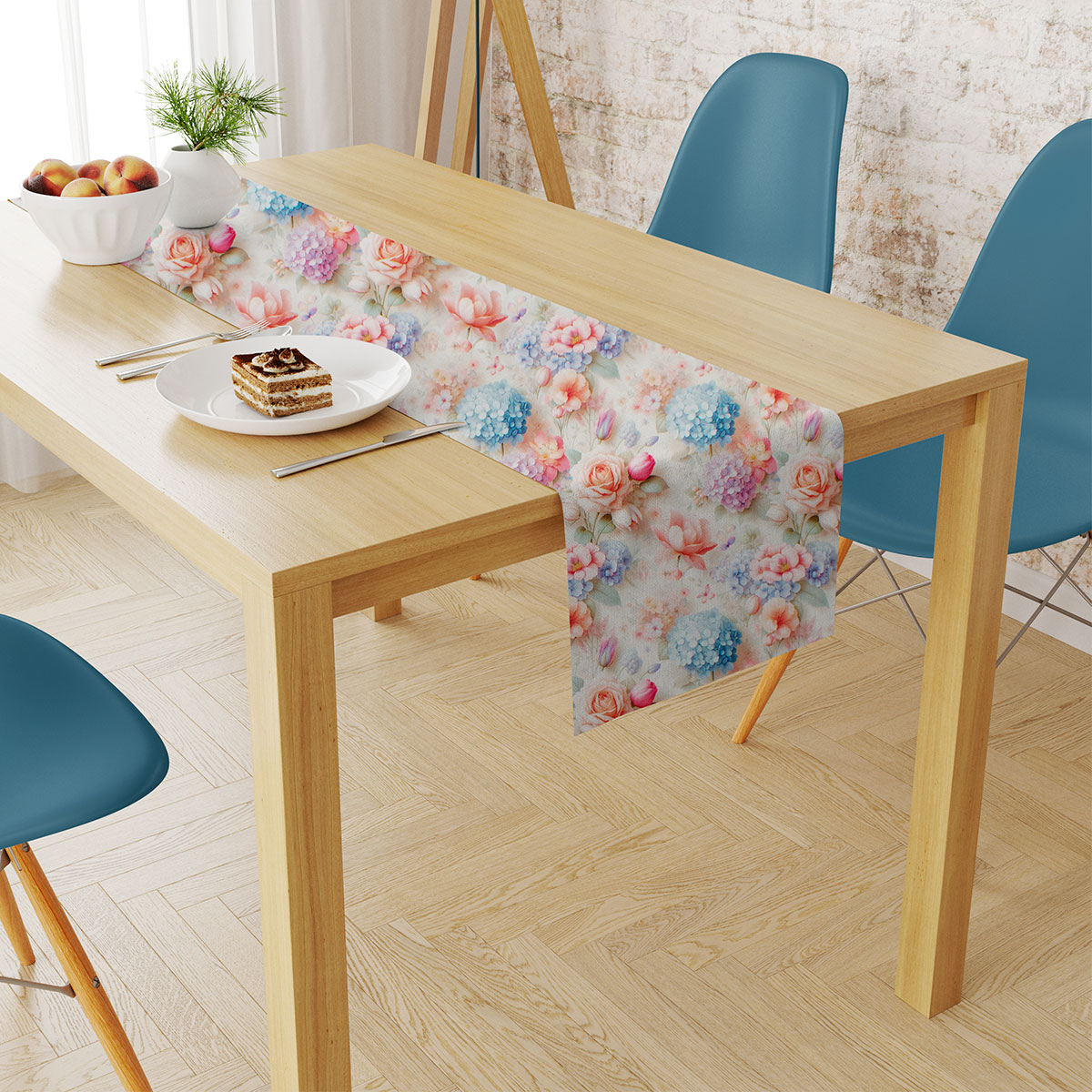 | DimcolΑλέκιαστο Τραπεζομάντηλο (140x220) + Τραβέρσα (40x220) Dimcol Ορτανσίες 464 Multi