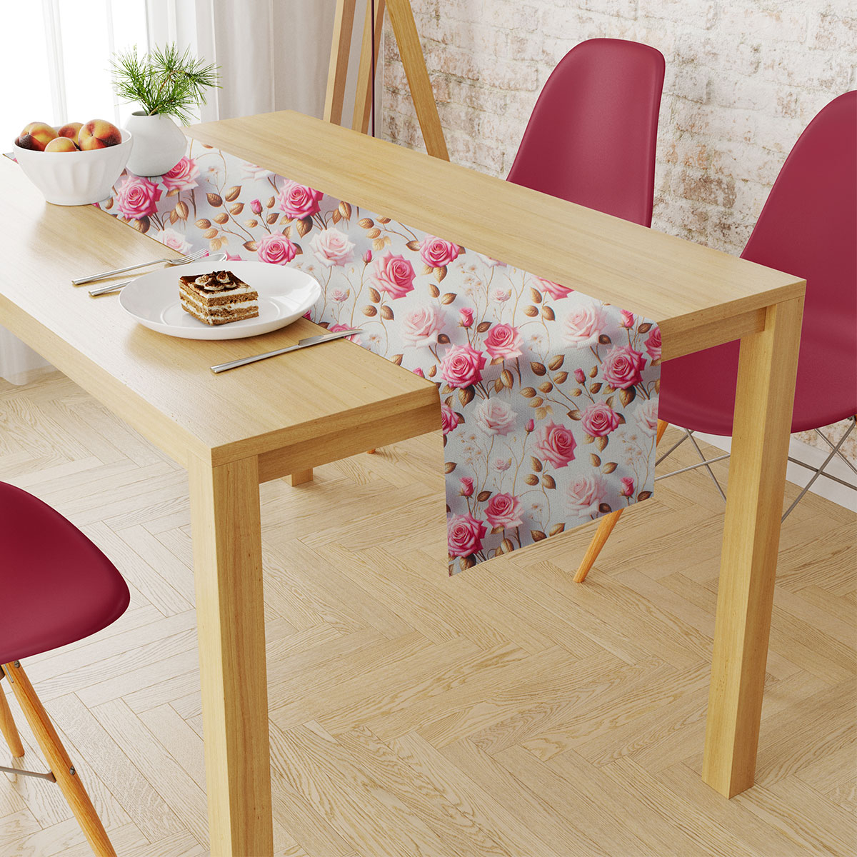 Αλέκιαστο Τραπεζομάντηλο (140x300) + Τραβέρσα (40x300) Dimcol Roses 465 Grey - Pink