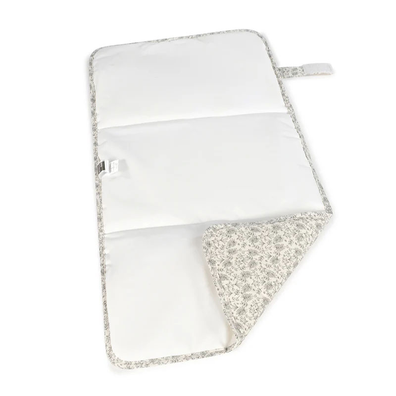 Πρακτική φορητή αλλαξιέρα από την εταιρεία Walking Mum σε γκρι χρώμα, με εκρού λεπτομέρειες και φλοράλ σχέδιο. Η σύνθεση του υφάσματος είναι από 100% πλαστικοποιημένο βαμβάκι που έχει υποστεί ειδική επεξεργασία ώστε να είναι αδιάβροχο. Ως αποτέλεσμα να διευκολύνει το καθάρισμα και να μην διατηρεί τις οσμές στο εσωτερικό. Η Walking Mum προστατεύει το μωρό σας χρησιμοποιώντας τα καλύτερα υφάσματα, απαλλαγμένα από επιβλαβείς ουσίες για την υγεία. Κατάλληλη για τοποθέτηση σε κάθε έπιπλο όπως συρταριέρα. Το μέγεθός της σας επιτρέπει να την έχετε μαζί σας στη βόλτα αφού αποθηκεύεται εύκολα σαν τσαντάκι.