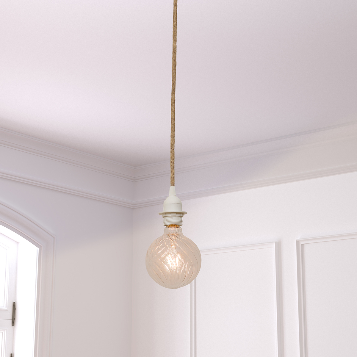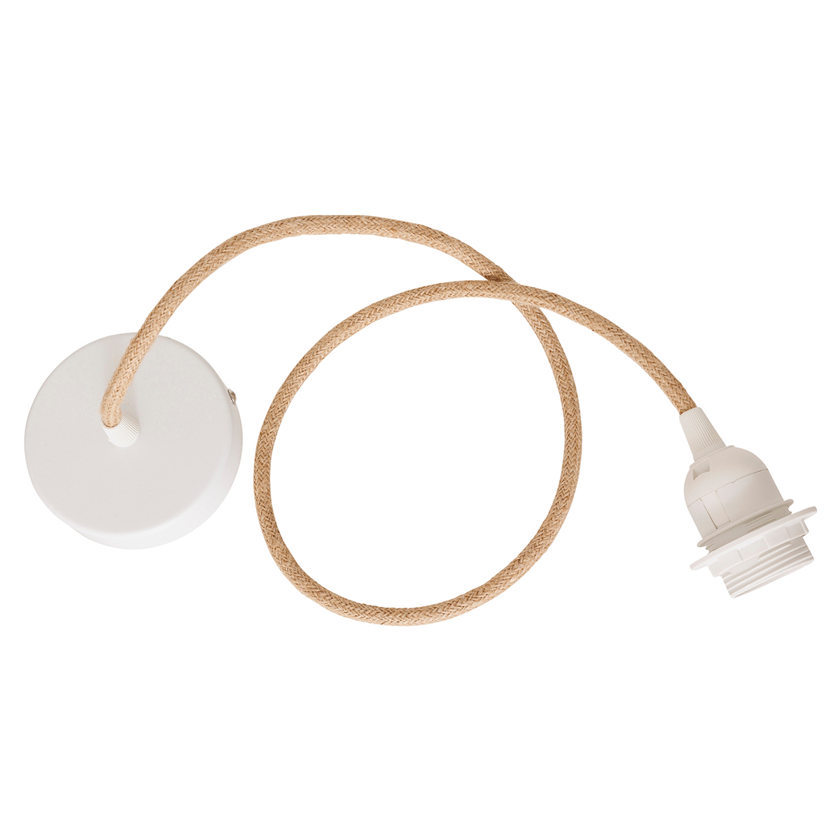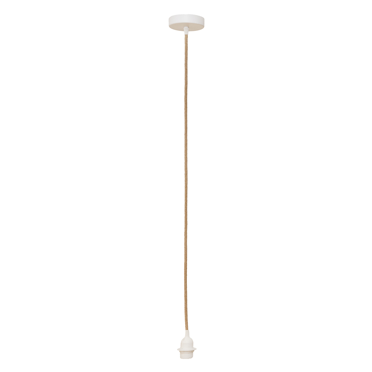 Ανάρτηση φωτιστικού οροφής μήκους 80εκ. σε μίνιμαλ στυλ. Έχει πλαστικό καλώδιο και στρογγυλή ροζέτα σε μπεζ χρώμα. Μπορεί να τοποθετηθεί καπέλο για ντουί διαστάσεων: Φ4εκ.x6εκ.Υ. Τύπος ντουί: 1xE27 και θέση για 1 λαμπτήρα έως 40W (δεν συμπεριλαμβάνεται). Δεν περιλαμβάνονται οι βίδες στερέωσης.