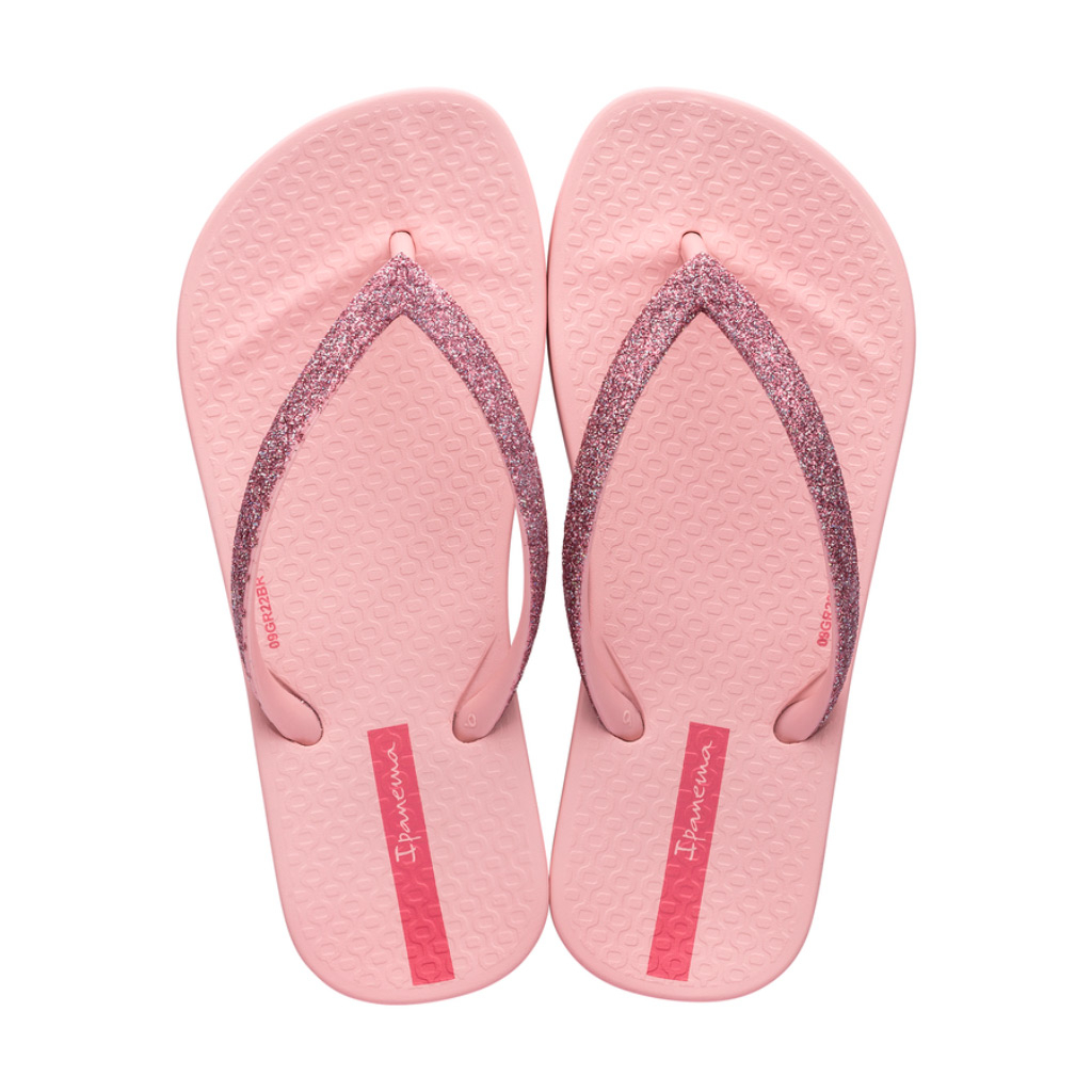 Παιδικές σαγιονάρες θαλάσσης από την εταιρεία Ipanema σε ροζ απόχρωση με γκλίτερ. Είναι κατασκευασμένες από 100% ανακυκλώσιμο και vegan latex, που εξασφαλίζει αντοχή και προστατεύει από τη δυσοσμία. Διαθέτουν αντιολισθητική σόλα για μεγαλύτερη σταθερότητα και ανατομικό πάτο. Το ύψος του τακουνιού είναι 1εκ. και το ύψος της φιάπας είναι 0,5εκ. Είναι ιδανικές τόσο για το σπίτι και τη βόλτα, όσο και για την παραλία. Χώρα προέλευσης: Βραζιλία. *Προτείνεται στα προϊόντα Ipanema να αγοράσετε 1 νούμερο μεγαλύτερο από το μέγεθος του πέλματος σας.*
