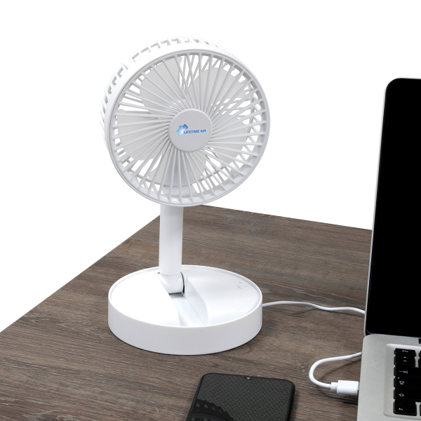 Ανεμιστήρας επιτραπέζιος από την εταιρεία Lifetime. Είναι πτυσσόμενος από 25εκ. έως 30εκ. και αναδιπλούμενος για να αποθηκεύεται και να μεταφέρεται εύκολα. Είναι επαναφορτιζόμενος και διαθέτει καλώδιο USB 110εκ.