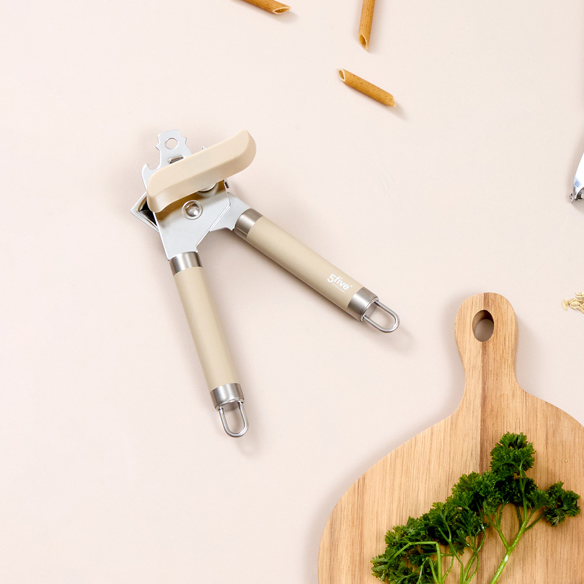 Ανοιχτήρι κονσέρβας κατασκευασμένο από ανοξείδωτο υλικό σε μοντέρνο μπεζ χρώμα. Απαραίτητο και πρακτικό εργαλείο κουζίνας για καθημερινή χρήση, που διευκολύνει το άνοιγμα κονσερβών.