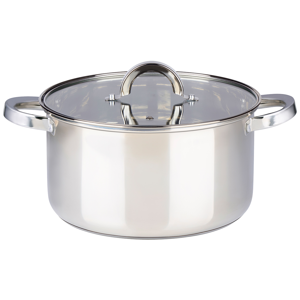 Κατσαρόλα διαμέτρου 24εκ. από την εταιρεία Alpina. Είναι κατασκευασμένη από ανοξείδωτο ατσάλι το οποίο είναι ανθεκτικό στη διάβρωση και πολύ στιβαρό. Διαθέτει λαβές για εύκολη μεταφορά. Το διάφανο γυάλινο καπάκι έχει λαβή και σας δίνει τη δυνατότητα να βλέπετε μέσα στην κατσαρόλα κατά τη διαδικασία μαγειρέματος. Η οπή που διαθέτει επιτρέπει τη διαφυγή του ατμού. Η βάση είναι ανοξείδωτη με πάχος 1mm. Κατάλληλο για όλες τις εστίες συμπεριλαμβανομένης της επαγωγικής. Χωρητικότητα 6.1lt.