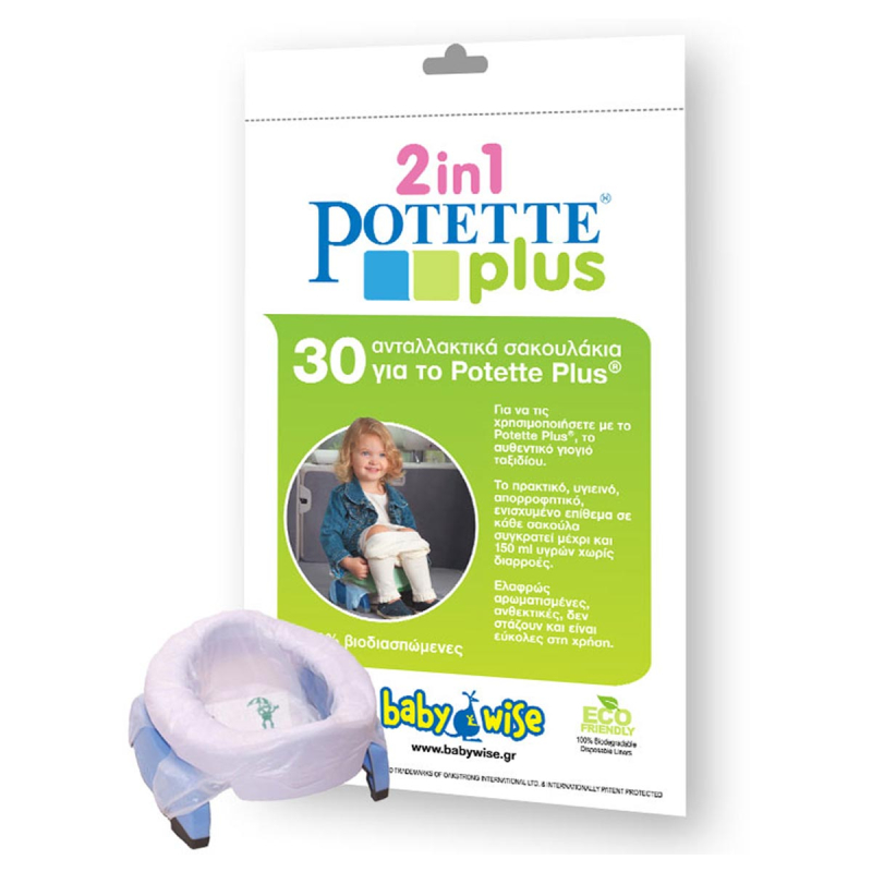 Ανταλλακτικό ρολό με 30 σακούλες για το γιογιό από την εταιρία Pottete Plus. Είναι βιοδιασπώμενες και υπέρ απορροφητικές, ιδανικές για τα ταξίδια. Κλείνουν αεροστεγώς και είναι ελαφρώς αρωματισμένες. Τα βατραχάκια που διαθέτει η κάθε σακούλα στην επένδυση που βρίσκεται στο κέντρο, εξαφανίζονται μόλις βραχούν, ενθαρρύνοντας έτσι το μικρό σας να κάνει την ανάγκη του. Οι σακούλες έρχονται σε ρολό, και απλά τις τραβάτε όπως τα μωρομάντηλα. Στο γιογιό μπορείτε να τοποθετήσετε μέχρι 3 σακούλες. Πρακτική και βολική λύση.