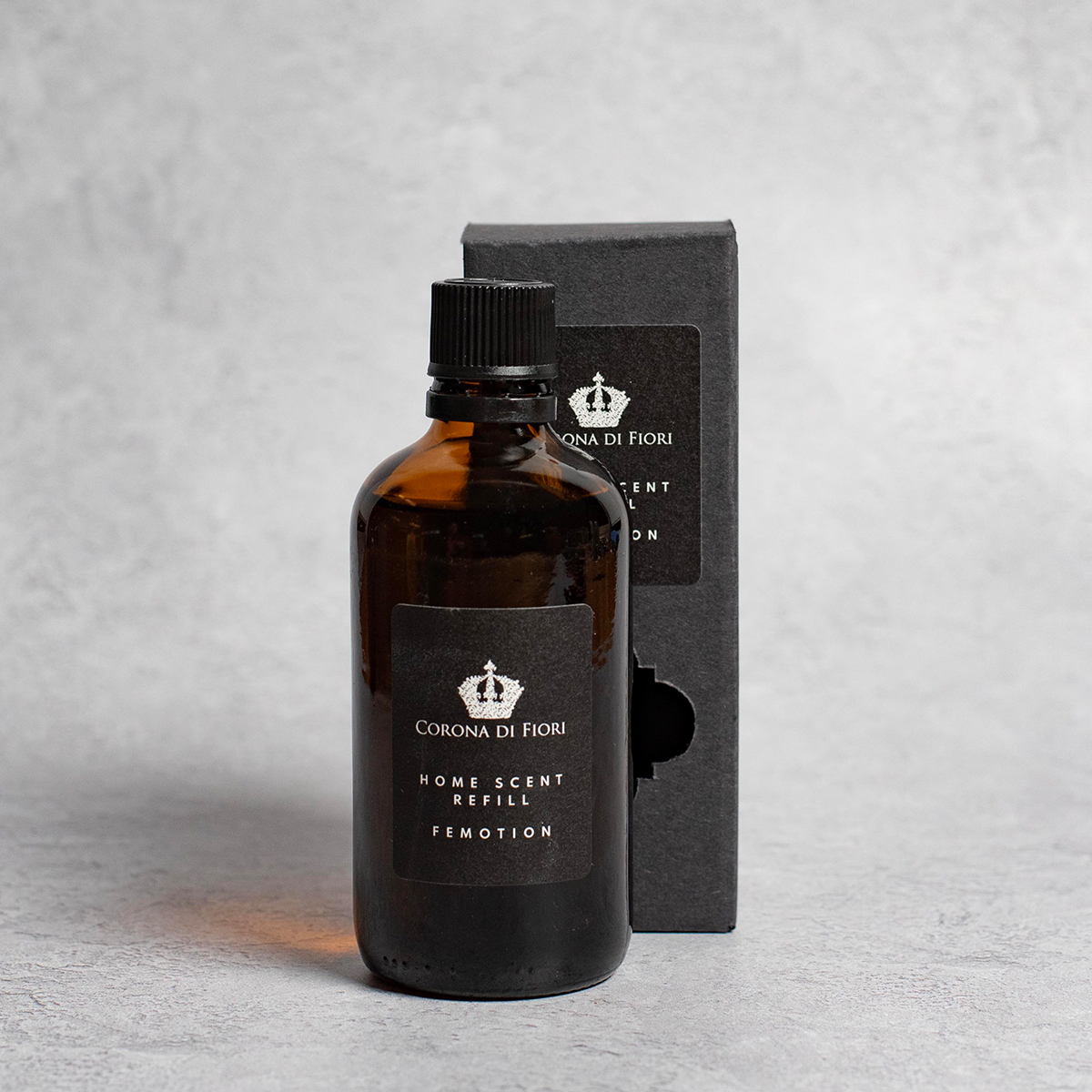 Ανταλλακτικό αρωματικό χώρου "Femotion" χωρητικότητας 100ml από την εταιρεία Corona di Fiori. Συνδυάζει αρώματα από λευκό κέδρος, tobacco και κεχριμπάρι. Αποφύγετε να τα τοποθετείτε κοντά σε κάποια πηγή θερμότητας, ώστε να μην σας τελειώνει γρήγορα το υγρό. Ιδανικό για μια γλυκιά και φρέσκια ατμόσφαιρα σε όλους τους χώρους του σπιτιού. Το αρώματα είναι 100% φυσικά, με αποστάγματα από αιθέρια έλαια υψηλής ποιότητας.