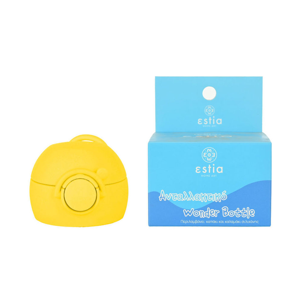 Ανταλλακτικό καπάκι θερμός και καλαμάκι από την εταιρεία εstia σε κίτρινο χρώμα. Είναι συμβατό με όλα τα παγούρια - θερμός 350ml με καλαμάκι της εταιρείας. Το σχέδιο του ταιριάζει στο παγούρι - θερμός Jungle.
