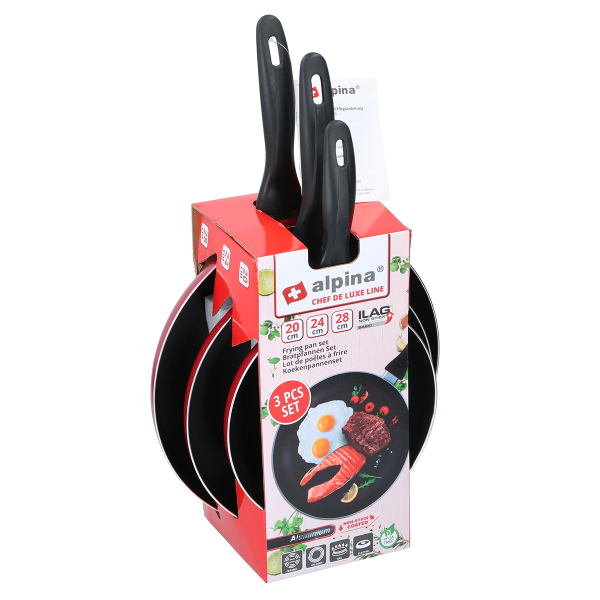 Αντικολλητικά Τηγάνια (Σετ 3τμχ) Αλουμινίου Alpina 871125218295 Red