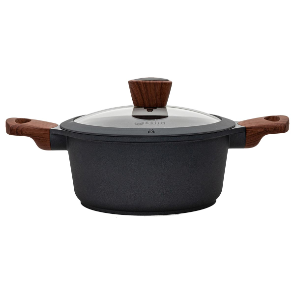 Αντικολλητική κατσαρόλα μεχωρητικότητα 2.5 λίτρα σε μαύρο χρώμα της εταιρείας εstia. Είναι κατασκευασμένη από χυτό αλουμίνιο με πιστοποίηση Cookmark, ενώ διαθέτει τριπλή αντικολλητική επίστρωση με όψη πέτρας για καλύτερη απόδοση στο μαγείρεμα σας. Προσφέρει ομοιόμορφη κατανομή της θερμοκρασίας για τέλειο ψήσιμο και γρήγορο μαγείρεμα. Το γυάλινο πυράντοχο καπάκι περιβάλλεται από στεφάνι σιλικόνης ενώ οι εργονομικές αντιολισθητικές της λαβές από βακελίτη παραμένουν κρύες για ασφαλές και άνετο κράτημα. Τα αντικολλητικά μαγειρικά σκεύη από χυτό αλουμίνιο είναι ιδανικά για τηγάνισμα, ψήσιμο κρεάτων, σοτάρισμα λαχανικών λόγω της στιβαρής κατασκευής τους, καθώς είναι ανεκτικά σε γδαρσμίματα και σε υψηλές θερμοκρασίες. Για τις οδηγίες χρήσης και φροντίδας μπορείτε να συμβουλευτείτε τις φωτογραφίες. Κατάλληλη για εστίες αλογόνου, ηλεκτρικές εστίες, κεραμικές, επαγωγικές και εστίες υγραερίου. Μπορεί να τοποθετηθεί και στο πλυντήριο πιάτων. Ιδανικό σκεύος για εύκολο και ασφαλές μαγείρεμα.