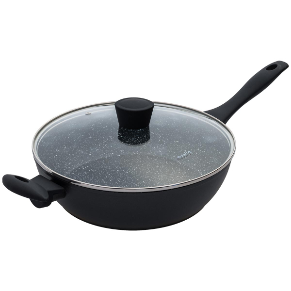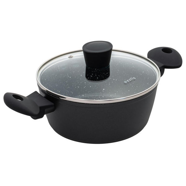 Αντικολλητική κρεπιέρα με διάμετρο 26εκ. σε μαύρο χρώμα της εταιρείας εstia. Είναι κατασκευασμένη από πρεσσαριστό αλουμίνιο πάχους 3.0mm, ενώ διαθέτει τριπλή μαρμάρινη αντικολλητική επίστρωση για καλύτερη απόδοση στο μαγείρεμα σας. Προσφέρει ομοιόμορφη κατανομή της θερμοκρασίας για τέλειο ψήσιμο και γρήγορο μαγείρεμα. Έχει ενισχυμένη ανθεκτικότητα στα γδαρσίματα προσφέροντας μεγαλύτερη διάρκεια ζωής. Η εργονομική αντιολισθητική λαβή από βακελίτη διατηρεί κρύα θερμοκρασία για άνετο κράτημα χωρίς τραυματισμούς. Τα αντικολλητικά μαγειρικά σκεύη από πρεσσαριστό αλουμίνιο είναι ιδανικά για τηγάνισμα, ψήσιμο κρεάτων, σοτάρισμα λαχανικών λόγω της στιβαρής κατασκευής τους, καθώς είναι ανεκτικά σε γδαρσμίματα και σε υψηλές θερμοκρασίες. Για τις οδηγίες χρήσης και φροντίδας μπορείτε να συμβουλευτείτε τις φωτογραφίες. Κατάλληλη για εστίες αλογόνου, ηλεκτρικές εστίες, κεραμικές, επαγωγικές και εστίες υγραερίου. Μπορεί να τοποθετηθεί και στο πλυντήριο πιάτων. Ιδανικό σκεύος για εύκολο και ασφαλές μαγείρεμα.