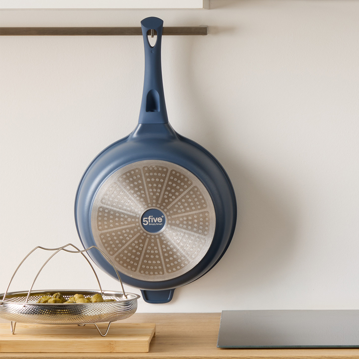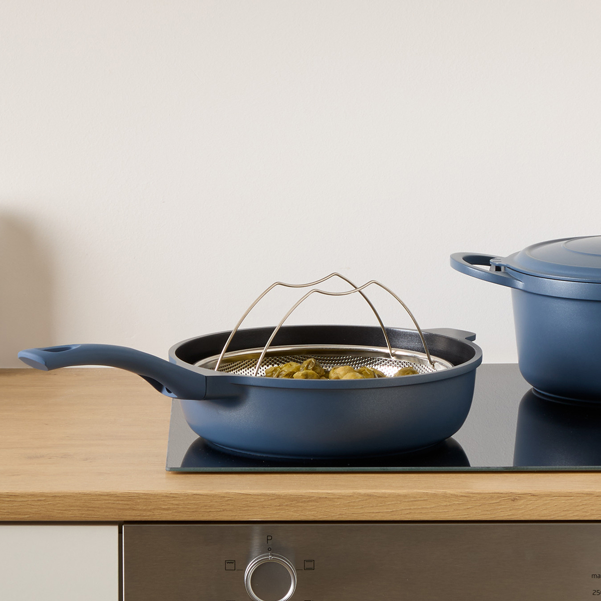 Αντικολλητικό τηγάνι χυτού αλουμινίου σε μπλε χρώμα. Διαθέτει αποσπώμενο καλάθι ατμού από ανοξείδωτο υλικό, για εύκολο και υγιεινό μαγείρεμα στον ατμό. Το χυτό αλουμίνιο καθιστά το σκεύος πιο στιβαρό και το μαγείρεμα πιο ομοιόμορφο. Ο ενισχυμένος πάτος του προσφέρει ομοιόμορφη κατανομή της θερμοκρασίας για τέλειο ψήσιμο και γρήγορο μαγείρεμα. Κατάλληλο για εστίες αλογόνου, ηλεκτρικές εστίες, κεραμικές, επαγωγικές και εστίες υγραερίου. Μπορεί να τοποθετηθεί και στο πλυντήριο πιάτων. Ιδανικό σκεύος για εύκολο και ασφαλές μαγείρεμα. Το σετ περιλαμβάνει και πρακτικό καπάκι από το ίδιο υλικό και μία κουτάλα.