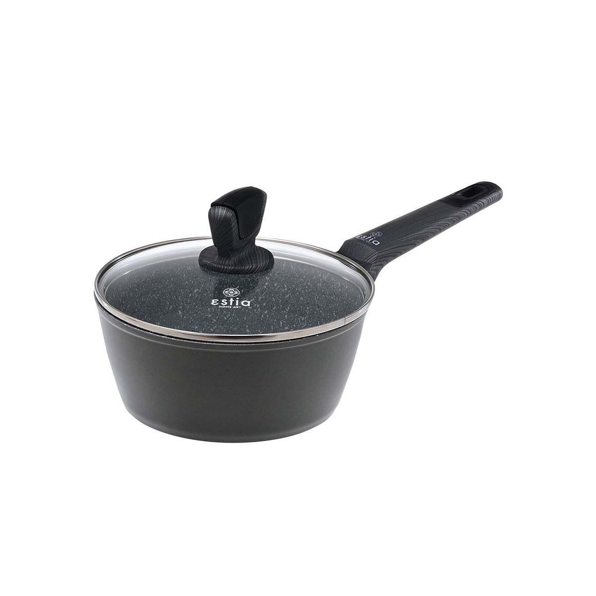 Αντικολλητικό κατσαρολάκι γάλακτος με χωρητικότητα 1.8 λίτρα σε μαύρο χρώμα της εταιρείας εstia. Είναι κατασκευασμένο από πρεσσαριστό αλουμίνιο πάχους 3.0mm, ενώ διαθέτει τριπλή μαρμάρινη αντικολλητική επίστρωση για καλύτερη απόδοση στο μαγείρεμα σας. Προσφέρει ομοιόμορφη κατανομή της θερμοκρασίας για τέλειο ψήσιμο και γρήγορο μαγείρεμα. Έχει ενισχυμένη ανθεκτικότητα στα γδαρσίματα προσφέροντας μεγαλύτερη διάρκεια ζωής. Το γυάλινο πυράντοχο καπάκι περιβάλλεται από ανοξείδωτο στεφάνι ενώ οι εργονομικές αντιολισθητικές του λαβές από βακελίτη δεν θερμαίνονται για ασφαλές και άνετο κράτημα. Τα αντικολλητικά μαγειρικά σκεύη από πρεσσαριστό αλουμίνιο είναι ιδανικά για τηγάνισμα, ψήσιμο κρεάτων, σοτάρισμα λαχανικών λόγω της στιβαρής κατασκευής τους, καθώς είναι ανεκτικά σε γδαρσίματα και σε υψηλές θερμοκρασίες. Κατάλληλο για εστίες αλογόνου, ηλεκτρικές εστίες, κεραμικές, επαγωγικές και εστίες υγραερίου. Μπορεί να τοποθετηθεί και στο πλυντήριο πιάτων. Ιδανικό για εύκολο και ασφαλές μαγείρεμα.