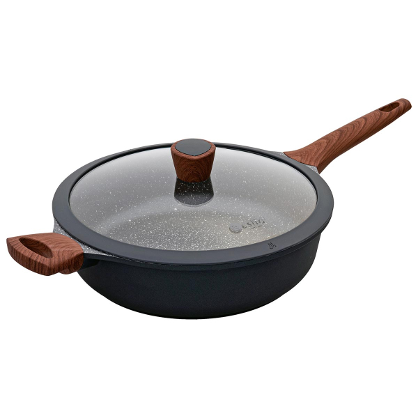 Αντικολλητικό τηγάνι με διάμετρο 26εκ. σε μαύρο χρώμα της εταιρείας εstia. Είναι κατασκευασμένο από υψηλής ποιότητας και αντοχής χυτό αλουμίνιο με πιστοποίηση Cookmark και τριπλή αντικολλητική επίστρωση με όψη πέτρας. Προσφέρει ομοιόμορφη κατανομή της θερμοκρασίας για τέλειο ψήσιμο και γρήγορο μαγείρεμα. Διαθέτει εργονομική και αντιολισθητική λαβή βακελίτη για να παραμένει κρύα κατά το μαγείρεμα. Τα αντικολλητικά μαγειρικά σκεύη από χυτό αλουμίνιο είναι ιδανικά για τηγάνισμα, ψήσιμο κρεάτων, σοτάρισμα λαχανικών λόγω της στιβαρής κατασκευής τους, καθώς είναι ανεκτικά σε γδαρσμίματα και σε υψηλές θερμοκρασίες. Για τις οδηγίες χρήσης και φροντίδας μπορείτε να συμβουλευτείτε τις φωτογραφίες. Κατάλληλο για εστίες αλογόνου, ηλεκτρικές εστίες, κεραμικές, επαγωγικές και εστίες υγραερίου. Μπορεί να τοποθετηθεί και στο πλυντήριο πιάτων. Ιδανικό τηγάνι για εύκολο και ασφαλές μαγείρεμα.