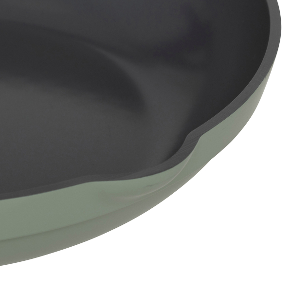 Αντικολλητικό τηγάνι με διάμετρο 28εκ. σε χακί χρώμα και λαβή με εφέ ξύλου. Είναι κατασκευασμένο από χυτό αλουμίνιο και διαθέτει διπλή αντικολλητική επίστρωση για καλύτερη απόδοση στο μαγείρεμα σας. Προσφέρει ομοιόμορφη κατανομή της θερμοκρασίας για τέλειο ψήσιμο και γρήγορο μαγείρεμα. Τα αντικολλητικά μαγειρικά σκεύη από χυτό αλουμίνιο είναι ιδανικά για τηγάνισμα, ψήσιμο κρεάτων, σοτάρισμα λαχανικών λόγω της στιβαρής κατασκευής τους, καθώς είναι ανεκτικά σε γδαρσίματα και σε υψηλές θερμοκρασίες. Κατάλληλο για εστίες αλογόνου, ηλεκτρικές εστίες, κεραμικές, επαγωγικές και εστίες υγραερίου. Δεν συνίσταται το πλύσιμο στο πλυντήριο πιάτων. Ιδανικό σκεύος για εύκολο και ασφαλές μαγείρεμα.