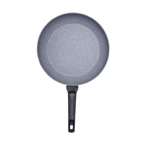 Αντικολλητικό τηγάνι με διάμετρο 30εκ. σε γκρι χρώμα της εταιρείας εstia. Είναι κατασκευασμένο από πρεσσαριστό αλουμίνιο πάχους 3.0mm, ενώ διαθέτει τριπλή μαρμάρινη αντικολλητική επίστρωση για καλύτερη απόδοση στο μαγείρεμα σας. Προσφέρει ομοιόμορφη κατανομή της θερμοκρασίας για τέλειο ψήσιμο και γρήγορο μαγείρεμα. Έχει ενισχυμένη ανθεκτικότητα στα γδαρσίματα προσφέροντας μεγαλύτερη διάρκεια ζωής. Η εργονομική αντιολισθητική λαβή από βακελίτη δεν θερμαίνεται για άνετο κράτημα χωρίς τραυματισμούς. Τα αντικολλητικά μαγειρικά σκεύη από πρεσσαριστό αλουμίνιο είναι ιδανικά για τηγάνισμα, ψήσιμο κρεάτων, σοτάρισμα λαχανικών λόγω της στιβαρής κατασκευής τους, καθώς είναι ανεκτικά σε γδαρσίματα και σε υψηλές θερμοκρασίες. Κατάλληλο για εστίες αλογόνου, ηλεκτρικές εστίες, κεραμικές, επαγωγικές και εστίες υγραερίου. Μπορεί να τοποθετηθεί και στο πλυντήριο πιάτων. Ιδανικό τηγάνι για εύκολο και ασφαλές μαγείρεμα.
