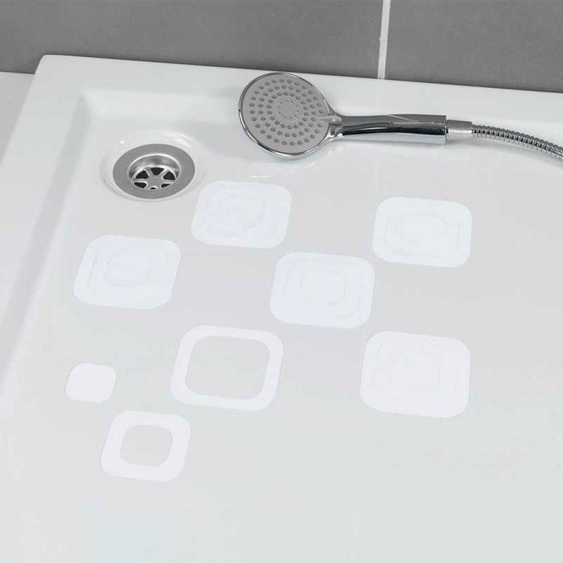 Σετ αντιολισθητικά πατάκια της γερμανικής εταιρείας Wenko. Είναι κατασκευασμένα από ανάγλυφο πλαστικό υλικό σε διάφανο χρώμα. Είναι αυτοκόλλητα ώστε να μένουν σταθερά στην θέση τους προσφέροντας έτσι μέγιστη ασφάλεια. Κάθε αυτοκόλλητο μπορεί να χωριστεί σε 3 κομμάτια για να δημιουργήσετε το δικό σας σχέδιο. Για να τοποθετήσετε τα αυτοκόλλητα, καθαρίστε και στεγνώστε την επιφάνεια του ντους ή της μπανιέρας. Τοποθετήστε τα αυτοκόλλητα στην επιφάνεια και πιέστε τα για να κολλήσουν. Μπορείτε να τα αφαιρέσετε και να τα τοποθετήσετε ξανά χωρίς να αφήσουν σημάδια.