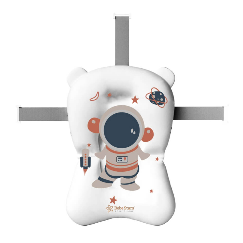 Στρωματάκι για το μπανάκι του μωρού σας από την εταιρεία Bebe Stars σε λευκό χρώμα και σχέδιο αστροναύτη με μπεζ-μπλε λεπτομέρειες. Ταιριάζει στα περισσότερα μπανάκια της εταιρείας Bebe Stars χάρη στους ιμάντες που διαθέτει, προσφέροντας ασφάλεια και άνεση στο μωρό. Στηρίζει την πλάτη του και επιτρέπει στους γονείς να κάνουν μπάνιο το παιδί τους χωρίς να ανησυχούν για την ασφάλειά του. Το ύφασμα του είναι φιλικό προς το δερματάκι του μωρού σας, στεγνώνει γρήγορα και επιτρέπει την ροή του αέρα, καθώς έχει 3D δίχτυ (κυψέλες). Κατασκευασμένο από υψηλής ποιότητας, μη τοξικά υλικά, είναι απόλυτα ασφαλές και πρακτικό. Κατάλληλο από την γέννηση.
