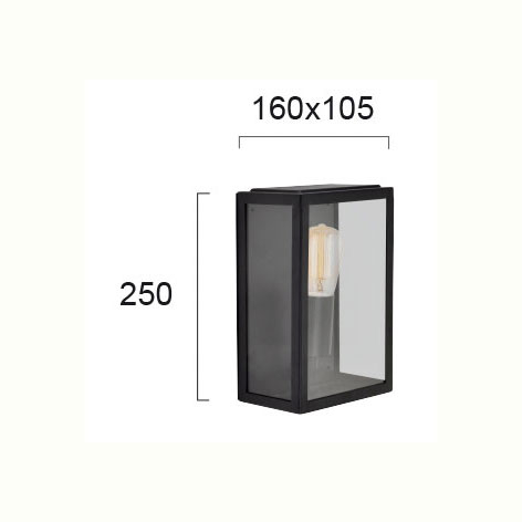 Απλίκα εξωτερικού χώρου με μοντέρνο σχεδιασμό, από την εταιρεία Viokef. Είναι κατασκευασμένη από μεταλλικό υλικό σε μαύρο χρώμα και διάφανο γυαλί. Διαθέτει προστασία από υγρασία και σκόνη με βαθμό στεγανότητας IP44 και είναι κατάλληλη και για εξωτερικούς χώρους. Είναι ιδανική λύση για να φωτίσετε και να διακοσμήσετε τον κήπο και τους εξωτερικούς χώρους του σπιτιού ή του εξοχικού σας. Τύπος ντουί: 1xE27 και θέση για 1 λαμπτήρα έως 60W (δεν συμπεριλαμβάνεται).