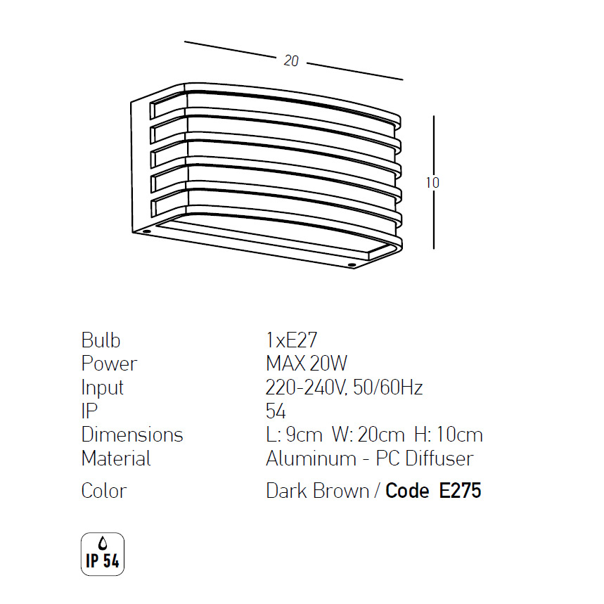 • Τεμάχια: 1 Επιτοίχιο Φωτιστικό Κήπου 20εκ.Μx9εκ.Πx10εκ.Υ