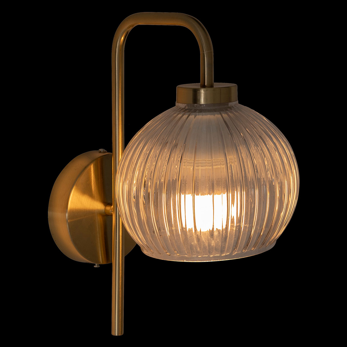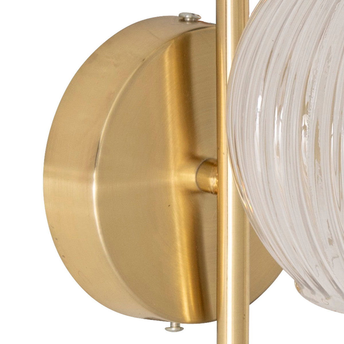 Απλίκα τοίχου με μοντέρνο σχεδιασμό. Είναι κατασκευασμένη από μεταλλικό υλικό σε χρυσό χρώμα και διαθέτει γυάλινο καπέλο με ανάγλυφο σχέδιο. Είναι κατάλληλη για χρήση σε εσωτερικό χώρο με IP20. Τύπος ντουί: 1xE27 και θέση για 1 λαμπτήρα έως 25W (δεν συμπεριλαμβάνεται). Συνδυάστε τη με τα υπόλοιπα φωτιστικά της ίδιας συλλογής για ένα ολοκληρωμένο αποτέλεσμα στο χώρο σας.