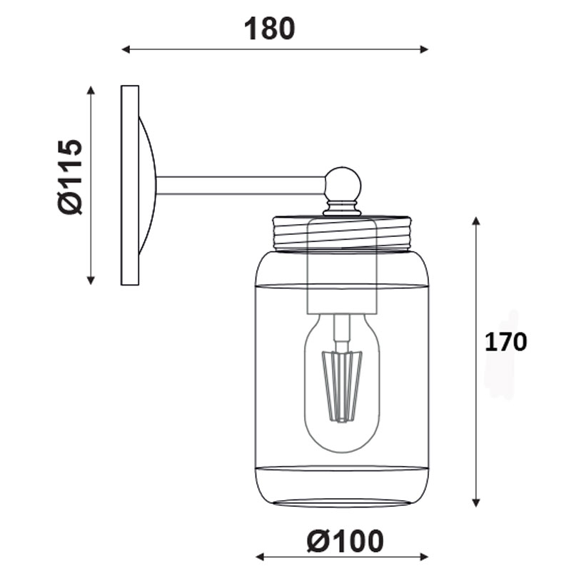 Απλίκα της εταιρείας Aca Decor σε vintage στυλ. Είναι κατασκευασμένη από μεταλλικό σκελετό σε μαύρο ματ χρώμα και διαφανές γυάλινο βάζο. Τύπος ντουί: 1xE27 και θέση για ένα λαμπτήρα έως 60W (δεν συμπεριλαμβάνεται).