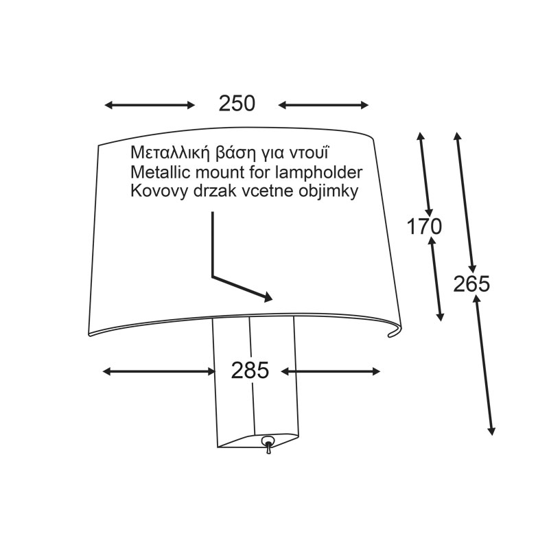 Απλίκα τοίχου της εταιρείας Aca Decor με μοντέρνο σχεδιασμό. Είναι κατασκευασμένη από μεταλλικό σκελετό σε απόχρωση χρωμίου και λευκό υφασμάτινο καπέλο. Τύπος ντουί: 1xE27 και θέση για 1 λαμπτήρα έως 60W (δεν συμπεριλαμβάνεται).