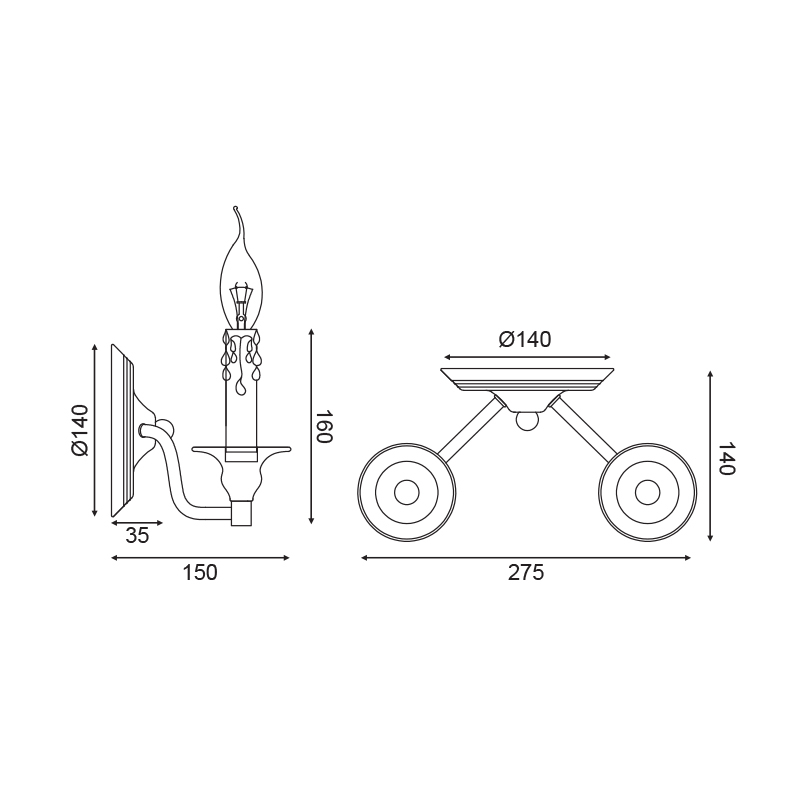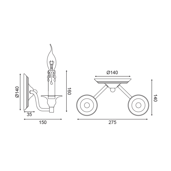 • Τεμάχια: 1 Απλίκα Τοίχου 27.5εκ.Μx14εκ.Πx16εκ.Υ & Βάση Φ14εκ.