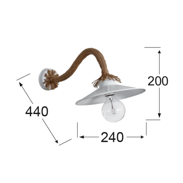 Απλίκα της εταιρείας Heronia σε μοντέρνο στυλ. Είναι κατασκευασμένη από πλαστικό υλικό σε λευκό χρώμα. Έχει διακοσμητικό μπεζ σχοινί. Διαθέτει προστασία από υγρασία και σκόνη με βαθμό στεγανότητας IP23 και είναι κατάλληλη και για εξωτερικούς χώρους. Τύπος ντουί: 1xE27 και θέση για 1 λαμπτήρα **ΑΠΟΚΛΕΙΣΤΙΚΑ LED έως 10W** (δεν συμπεριλαμβάνεται). Δεν περιλαμβάνονται οι βίδες στερέωσης.