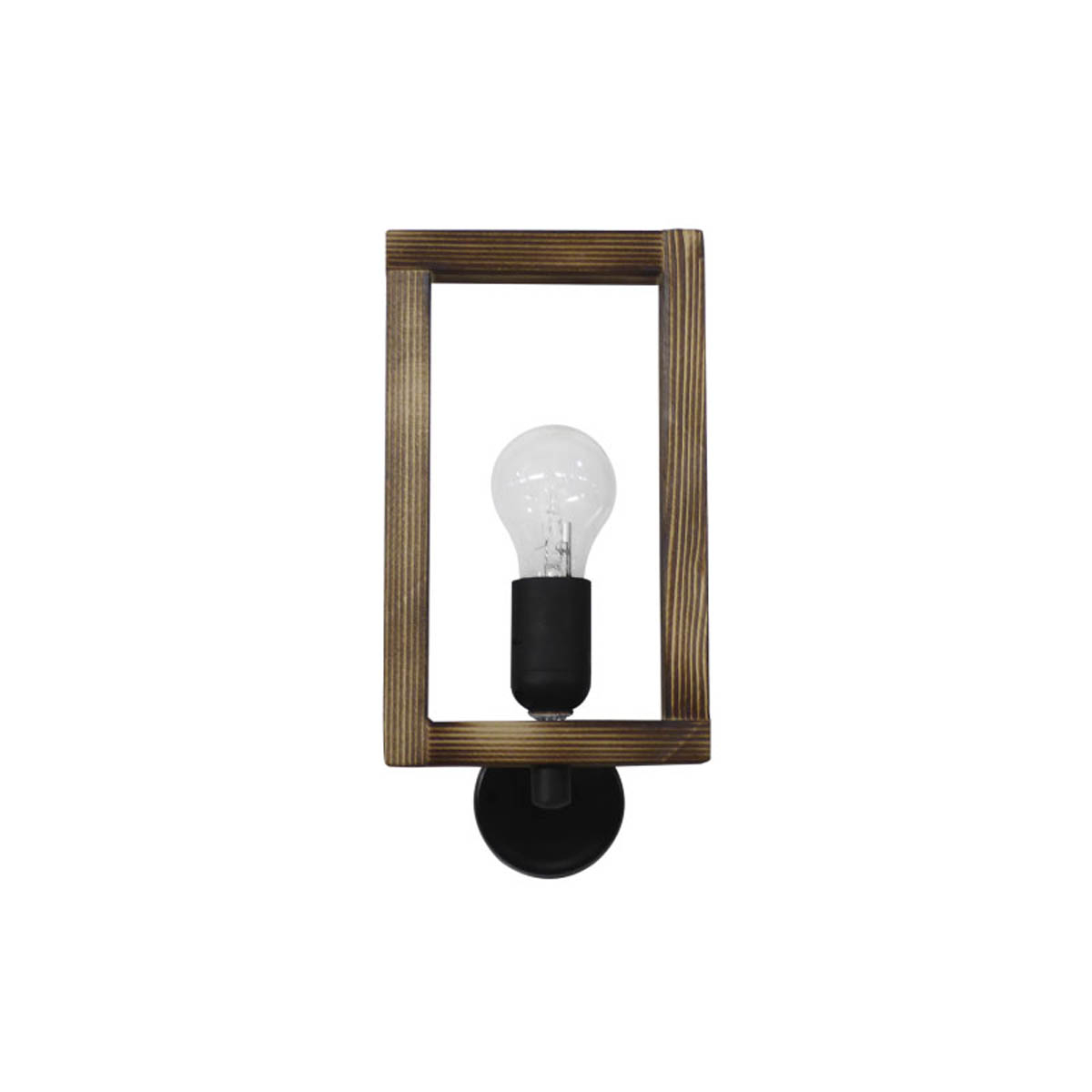 Απλίκα τοίχου της εταιρείας Heronia σε μοντέρνο στυλ. Είναι κατασκευασμένη από ξύλο σε καφέ απόχρωση. Διαθέτει μαύρη βάση τοποθέτησης και ντουί. Τύπος ντουί: 1xE27 και θέση για 1 λαμπτήρα **ΑΠΟΚΛΕΙΣΤΙΚΑ LED έως 10W** (δεν συμπεριλαμβάνεται). Δεν περιλαμβάνονται οι βίδες στερέωσης.