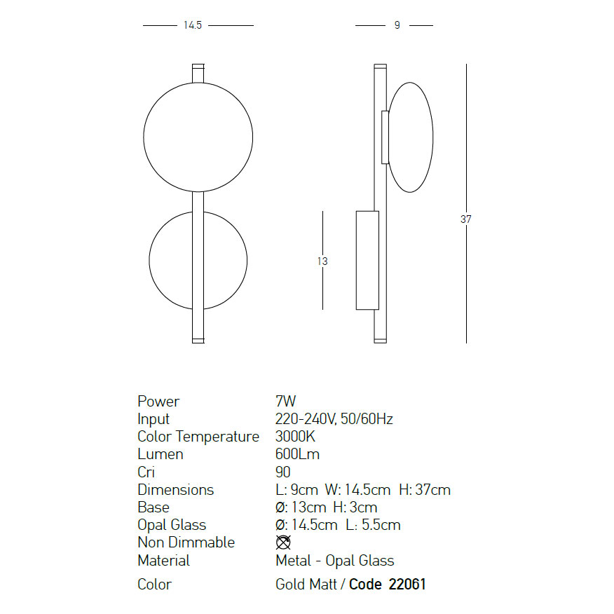 Απλίκα τοίχου της εταιρείας Zambelis σε μοντέρνο στυλ. Είναι κατασκευασμένη από μέταλλο σε χρυσό ματ χρώμα με 1 λευκή γυάλινη μπάλα. Διαθέτει 1 ενσωματωμένη πλακέτα Led με ισχύ 7Watt, θερμού λευκού φωτισμού 3000K και φωτεινότητας 600Lm. Τάση: 220-240Volt. Εγγύηση 2 χρόνια. Μετά το πέρας της εγγύησης, ενδεχόμενες επισκευές πραγματοποιούνται κατόπιν επικοινωνίας με τo Spitishop. Tο προϊόν θα αποσταλεί στον επίσημο προμηθευτή, ο οποίος καθορίζει και το κόστος επισκευής.