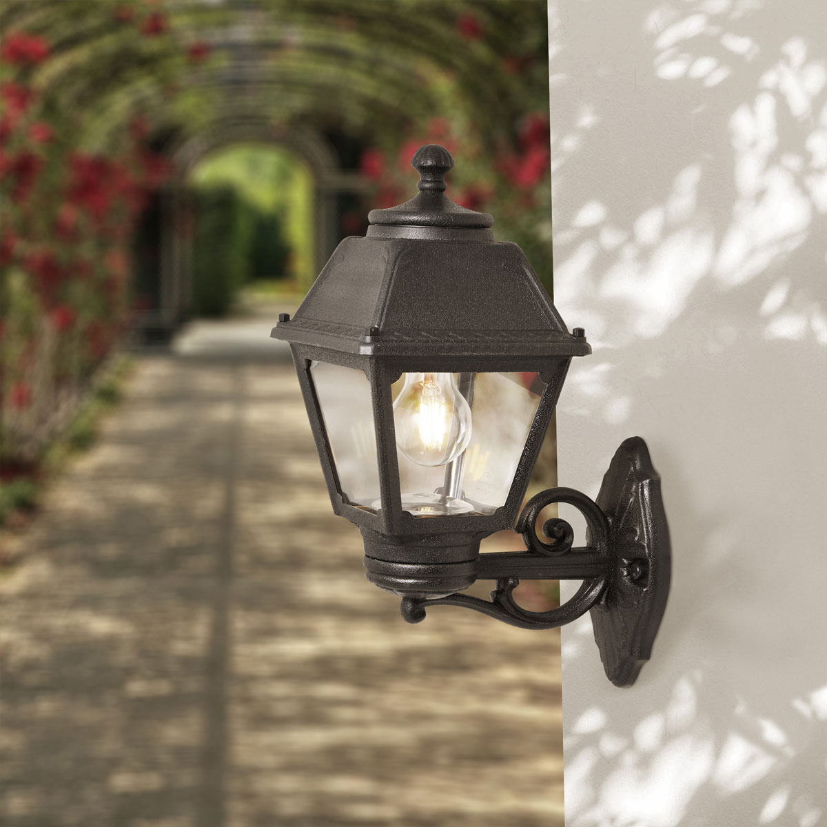 Επιτοίχιο φανάρι εξωτερικού χώρου της ιταλικής εταιρείας Fumagalli με vintage σχεδιασμό. Έχει δυνατότητα τοποθέτησης δύο κατευθύνσεων. Είναι κατασκευασμένο από ρητίνη σε μαύρο χρώμα. Έχει προστατευτικό κάλυμμα από plexiglass. Διαθέτει προστασία από υγρασία και σκόνη με βαθμό στεγανότητας IP55 που το καθιστά κατάλληλο για εξωτερικούς χώρους. Τύπος ντουί: 1xE27 και θέση για ένα λαμπτήρα έως 8.5W. Τα φωτιστικά από ρητίνη της ιταλικής εταιρείας Fumagalli έχουν αντιδιαβρωτική προστασία, δεν χρειάζονται συντήρηση και έχουν διπλή μόνωση. Δεν σκουριάζουν και είναι ανθεκτικά στα χημικά λιπάσματα και στην υπέρυθρη ακτινοβολία. Εγγύηση 2 χρόνια. Περιλαμβάνονται οι βίδες στερέωσης. **Ο λαμπτήρας δεν συμπεριλαμβάνεται.**