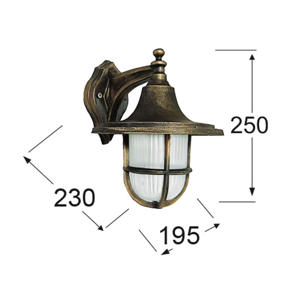Απλίκα - φανάρι της εταιρείας Heronia σε vintage στυλ. Είναι κατασκευασμένη από πλαστικό υλικό σε μπρονζέ χρώμα. Έχει προστατευτικό διάφανο πλαστικό. Διαθέτει προστασία από υγρασία και σκόνη με βαθμό στεγανότητας IP23 και είναι κατάλληλη και για εξωτερικούς χώρους. Τύπος ντουί: 1xE27 και θέση για 1 λαμπτήρα **ΑΠΟΚΛΕΙΣΤΙΚΑ LED έως 10W** (δεν συμπεριλαμβάνεται). Δεν περιλαμβάνονται οι βίδες στερέωσης.