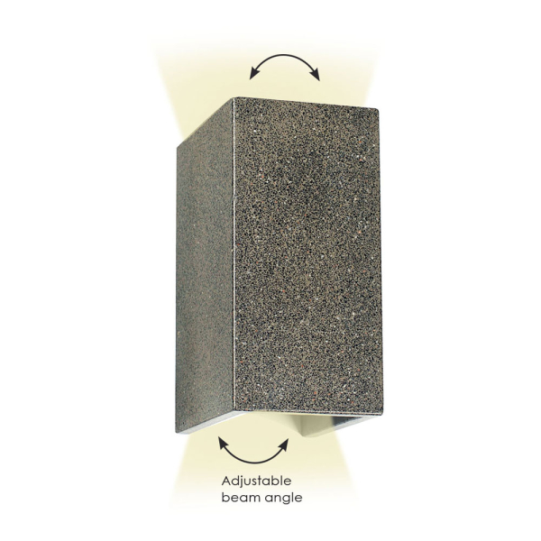 Απλίκα εξωτερικού χώρου με μοντέρνο στυλ, από την εταιρεία Viokef. Διαθέτει διπλή δέσμη φωτισμού up down και μπορείτε να ρυθμίσετε τη δέσμη φωτός σε μεγάλη ή μικρότερη. Έχει βαθμό στεγανότητας IP65, που την καθιστά ασφαλή για τοποθέτηση σε εξωτερικό χώρο. Είναι κατασκευασμένη από τσιμέντο σε μαύρο χρώμα με πιτσιλωτό σχέδιο. Τοποθετείται σε τοίχο. Διαθέτει 2 ενσωματωμένες πλακέτες Led με ισχύ 12W, θερμού λευκού φωτισμού 3000K και φωτεινότητας 722Lm. Τάση: 220-240Volt.
