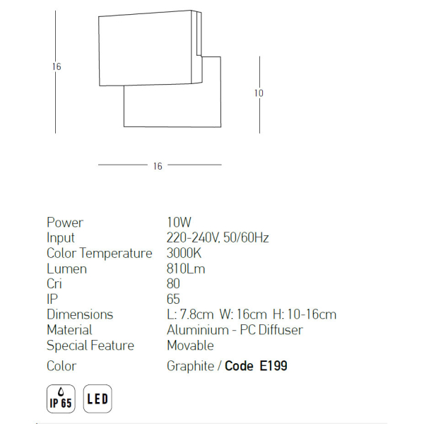 • Τεμάχια: 1 Επιτοίχιο Φωτιστικό Κήπου 16εκ.Μx7.8εκ.Πx10-16εκ.Υ