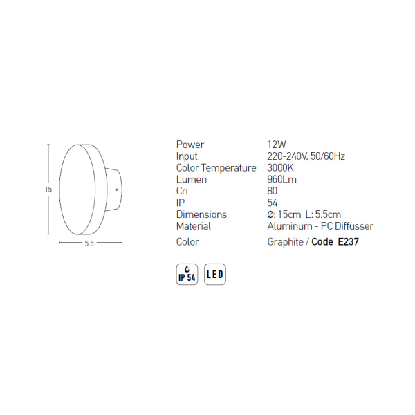 • Τεμάχια: 1 Επιτοίχιο Φωτιστικό Κήπου Φ15εκ.x5.5εκ.Π