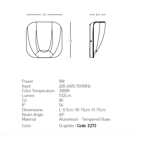 • Τεμάχια: 1 Επιτοίχιο Φωτιστικό Κήπου 15εκ.Μx6.5εκ.Πx15εκ.Υ