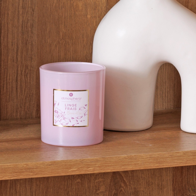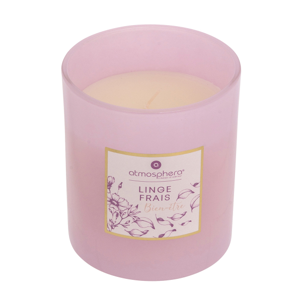 Κερί αρωματικό που θα χαρίσει άρωμα λινού στο χώρο σας. Το άρωμα λινού θυμίζει καθαριότητα και απλότητα, όπως τα καθαρά ρούχα που έχουν μόλις πλυθεί και στεγνώσει στον ήλιο. Είναι τοποθετημένο σε γυάλινο βαζάκι με ροζ χρώμα. Ιδανικό κερί για να δημιουργήσει μία φρέσκια, καθαρή και απαλή αίσθηση. Συνδυάστε το με τα υπόλοιπα είδη της ίδιας συλλογής για ένα ολοκληρωμένο αποτέλεσμα στο χώρο σας.
