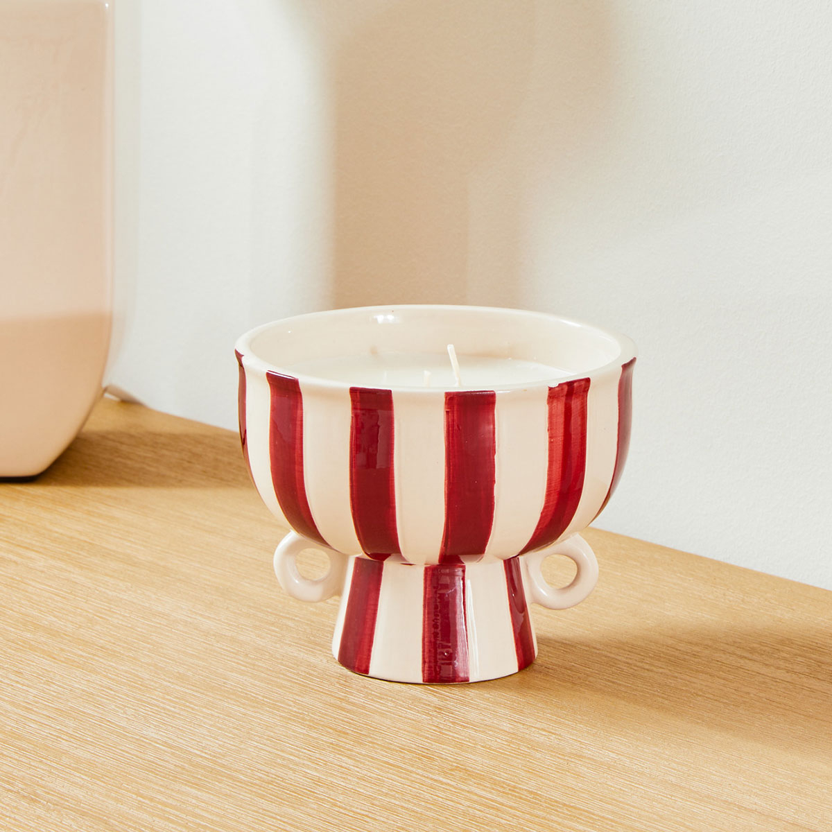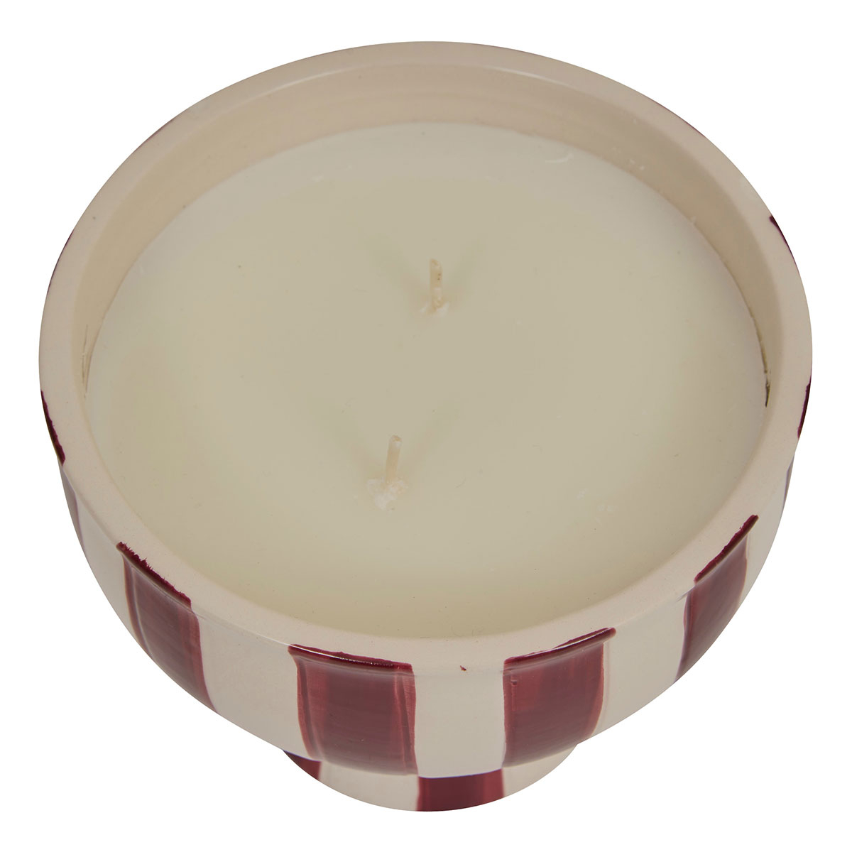 Κερί αρωματικό που θα ανανεώσει εσάς και την ατμόσφαιρα του χώρου σας. Έχει άρωμα πατσουλί που αποπνέει γήινο, ξυλώδες και ελαφρώς πικάντικο άρωμα. Δημιουργεί αίσθηση γαλήνης και ισορροπίας, χαρίζοντας ζεστή και μυστηριακή ατμόσφαιρα στον χώρο. Eίναι τοποθετημένο σε κεραμικό βαζάκι με κόκκινο - λευκό ριγέ σχέδιο και βάρος 310gr, ενώ έχει 2 φιτίλια. Ανάψτε το κερί και δημιουργήστε μία ευχάριστη και χαλαρή ατμόσφαιρα στον χώρο σας, απολαμβάνοντας την αίσθηση ζεστασιάς που προσφέρει.