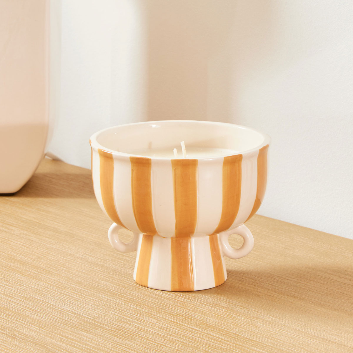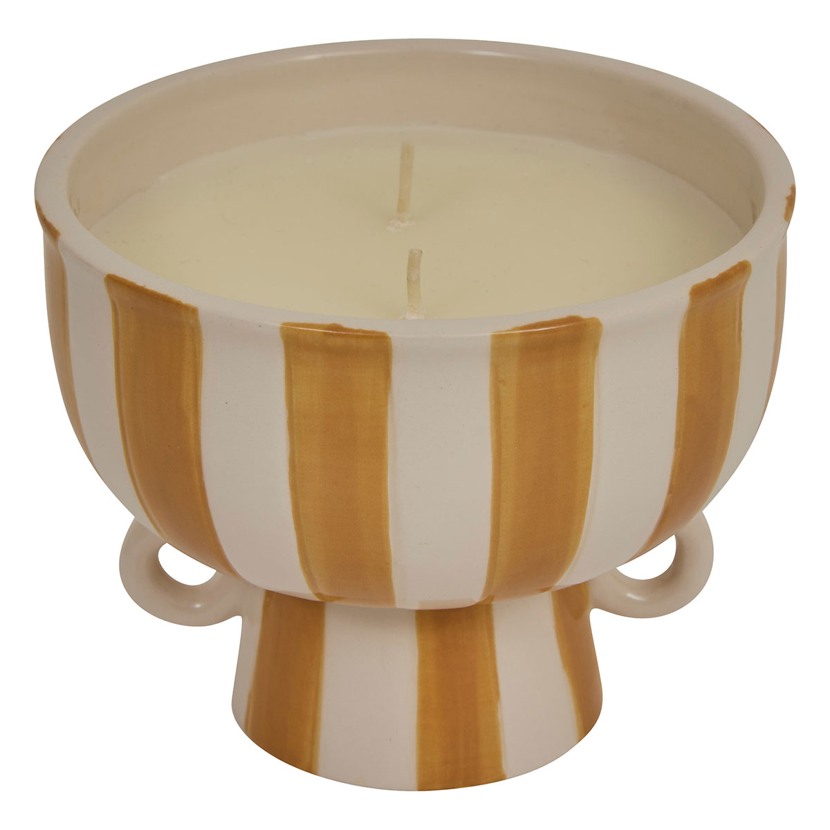 Κερί αρωματικό που θα ανανεώσει εσάς και την ατμόσφαιρα του χώρου σας. Έχει άρωμα κανέλα και πορτοκάλι που συνδυάζει γλυκές πικάντικες νότες με φρουτώδη δροσιά. Δημιουργεί ζεστή και γιορτινή ατμόσφαιρα, χαρίζοντας θαλπωρή, ενέργεια και μοναδική αίσθηση φρεσκάδας στον χώρο. Eίναι τοποθετημένο σε κεραμικό βαζάκι με κίτρινο - λευκό ριγέ σχέδιο και βάρος 310gr, ενώ έχει 2 φιτίλια. Ανάψτε το κερί και δημιουργήστε μία ευχάριστη και χαλαρή ατμόσφαιρα στον χώρο σας, απολαμβάνοντας την αίσθηση ζεστασιάς που προσφέρει.