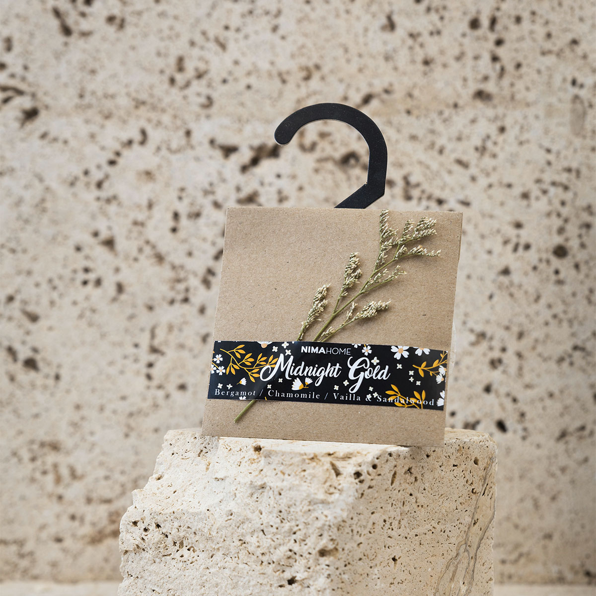 Αρωματικό για την ντουλάπα και τα συρτάρια από την εταιρεία Nima που χαρίζει φρεσκάδα στα ρούχα. Το άρωμά του Midnight Gold συνδυάζει νότες από περγαμόντο, χαμομήλι, βανίλια και σανδαλόξυλο.